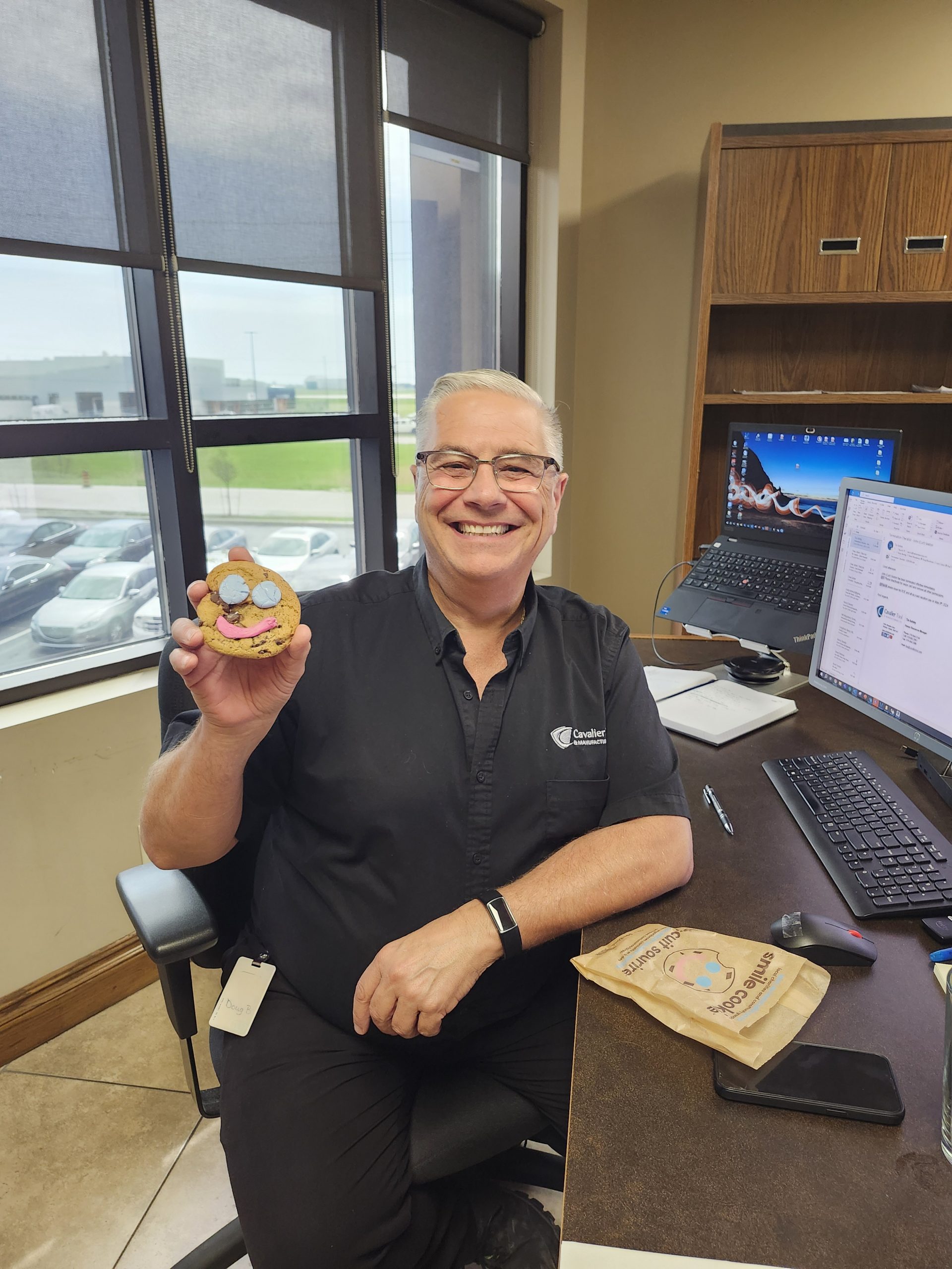 This year in April, The Social Club Planning Committee at Cavalier gathered a team and went to Tim Hortons to buy every employee a . 100% of the proceeds from Smile Cookies go to charities and community groups across Canada. Where Cavalier Headquarters is located in Windsor-Essex, the Smile Cookie program supports The Ontario Student Nutrition Program and The Hospice of Windsor and Essex County.