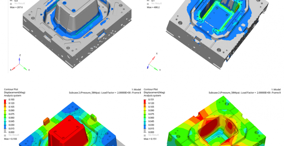- Step 2 – Flow Simulation: If there are any questions about gating or press size, we can run a mold filling simulation – using Autodesk Moldflow® – to provide valuable feedback for manifold configuration, gate location and press selection – key data points needed to begin tool design.